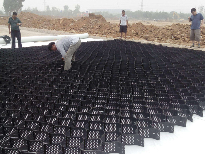 結構:土工格室展開后可以成為一個立體的、具有互連條帶的柔性結構,能夠承受較大的壓力和應變。